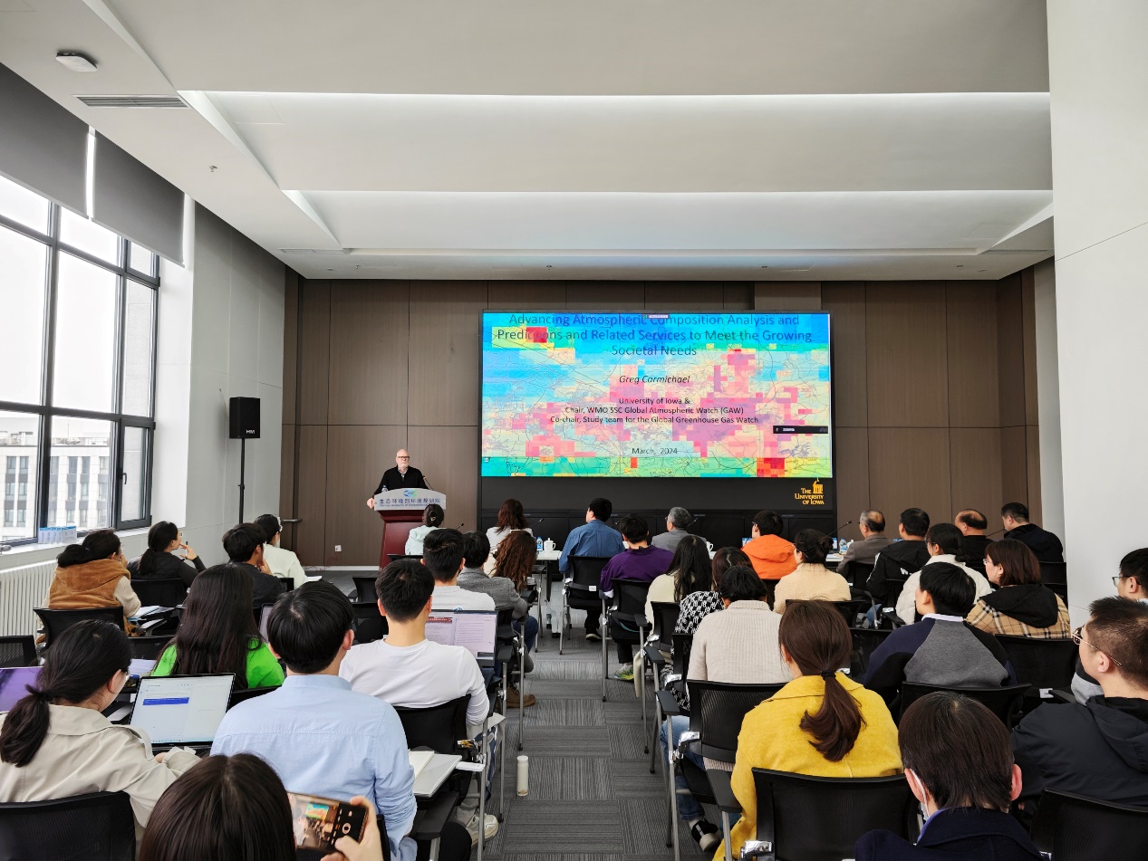 随后Carmichael教授在我院12层报告厅做了题为“Advancing Atmospheric Composition Analysis and Predictions and Related Services to Meet the Growing Societal Needs”的学术报告,报告活动由王金南院士主持。Carmichael教授介绍了他的研究团队针对大气污染物和温室气体等大气组分的观测和模拟工作进展,分享了不同情景下不同年龄人群由于大气污染暴露受到的健康影响分析成果,展示了由他共同主持的世界气象组织全球温室气体监测计划(Global Greenhouse Gas Watch,G3W)研究最新进展,并对该领域的未来方向进行了展望。