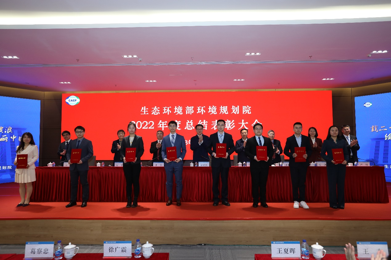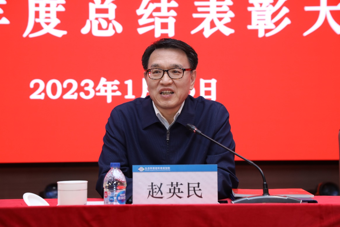院党委书记陆军代表院党委和领导班子对获得先进的集体和个人表示热烈祝贺,对过去一年辛勤付出的全院干部职工表示由衷感谢,并号召全院干部职工继续在部党组、领导班子的坚强领导下,坚决做到“两个维护”,始终牢记“国之大者”,以党的二十大精神为指引,深入贯彻落实习近平生态文明思想,秉承“求实、创新、引领、和谐”的发展理念,凝心聚力担使命,奋楫扬帆新征程,以攻坚克难的豪气、奋发有为的朝气,以坚如磐石的信心、只争朝夕的劲头,以孜孜不倦的探索、锐意革新的行动,在各项重点工作中做好决策支撑,为建设人与自然和谐共生的美丽中国做出更大的贡献!