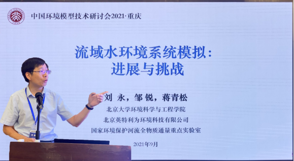刘永教授围绕流域水环境系统模拟的进展与挑战作了发言,他分别从流域尺度的系统模型、局地尺度的精细模拟和过程尺度的机理剖析三个层次系统介绍了 “智能流域管理-技术优化集成-机理过程揭示”研究体系,随后刘永教授从模型需求与研究应用、水质提升风险与挑战、数据融合与模型整合三个视角介绍了水环境系统模拟的最新进展,最后他总结了各类模型在响应预测预警、优化调控设计、评估与协同增效应用中的贡献,提出了在多源数据融合、多手段模型耦合上的研究展望。