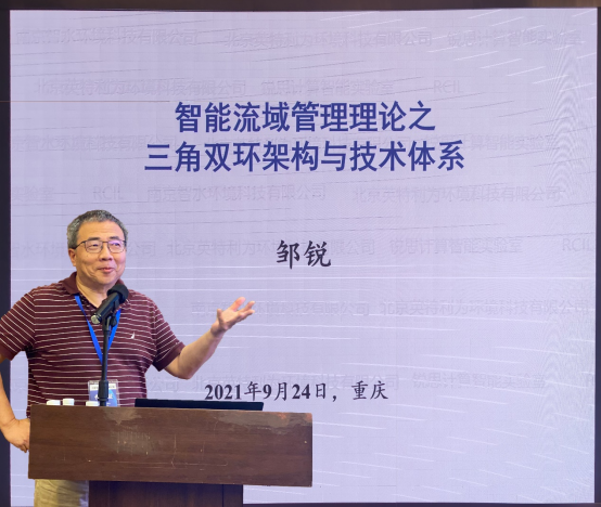 邹锐研究员为大家分享了智能流域管理理论中的三角双环架构与技术体系,并重点介绍了三角架构(因果分析、优化设计、动态仿真)与双环架构(定量定量分析、不确定性分析)在智能流域管理中的重要意义、内在关联与实证特征,随后他分享了IWIND模型系统在不同场景下的应用实效和智慧洱海决策支撑体系的演化,为参会人员分享了高效精准流域治理的一些心得体会。