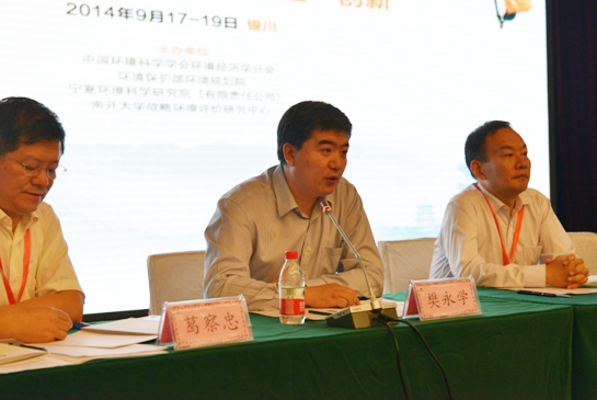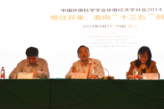 2014年9月17-19日,中国环境科学学会环境经济学分会2014年学术年会在宁夏银川顺利召开。本届年会由中国环境科学学会环境经济学分会、环境保护部环境规划院、宁夏环境科学研究院以及南开大学联合主办。大会由环境经济学分会秘书长、我院环境政策部葛察忠主任主持,我院邓志耕副书记、环境保护部政策法规司燕娥处长、环境经济学分会副主任委员、北京大学张世秋教授、宁夏环保厅政法处樊永学处长等出席了学术年会并致辞。来自环境规划院、中科院、北京大学、南京大学、武汉大学、南开大学、华东师范大学、西安交通大学以及全国多个省、市的环科院、规划院(所)的专家学者共140余人参加了会议。