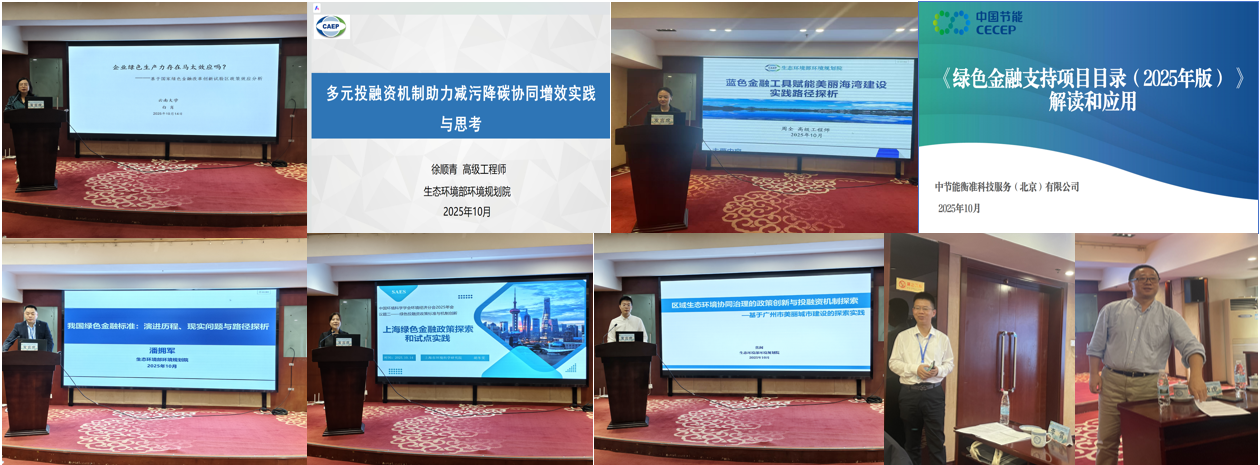环境规划院潘拥军助理研究员就“我国绿色金融标准:演进历程、现实问题与路径探析”作报告,系统梳理了我国绿色金融标准演进脉络,剖析了标准体系存在的“部门分割、统计不全、激励不充足”等问题。研究提出“强化顶层设计、健全统计分类、发挥部门合力”三位一体的优化路径,主张建立跨部门统筹协调机制和构建“国家标准+行业细则+地方试点”的协同体系、推动中外绿色标准互认、构建多政策组合拳的系统性激励约束机制,推动标准从“政府主导”转向“市场与政府双轮驱动”,有效提升我国绿色金融标准的系统性、适用性与国际影响力。