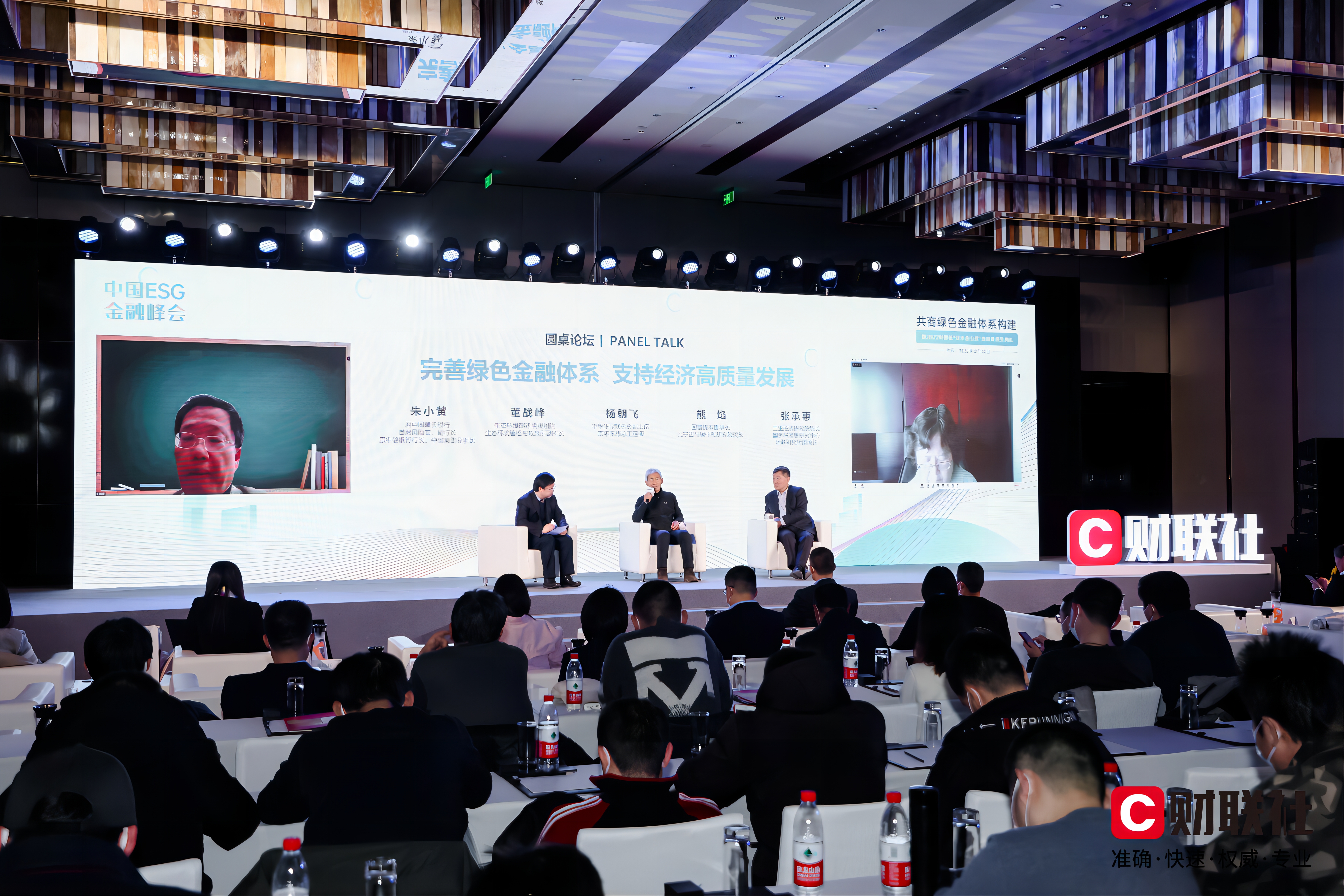 由环境规划院生态环境管理与政策所董战峰副所长主持的圆桌对话环节,中华环保联合会副主席、原环保部总工程师杨朝飞,原中国建设银行首席风险官、副行长、原中信银行行长朱小黄,三亚经济研究院院长、国务院发展研究中心金融研究所原所长张承惠以及国富资本董事长、元宇宙与碳中和研究院院长熊焰围绕完善绿色金融体系、绿色金融如何有效支持实体经济的发展等话题展开思想的交流与碰撞。