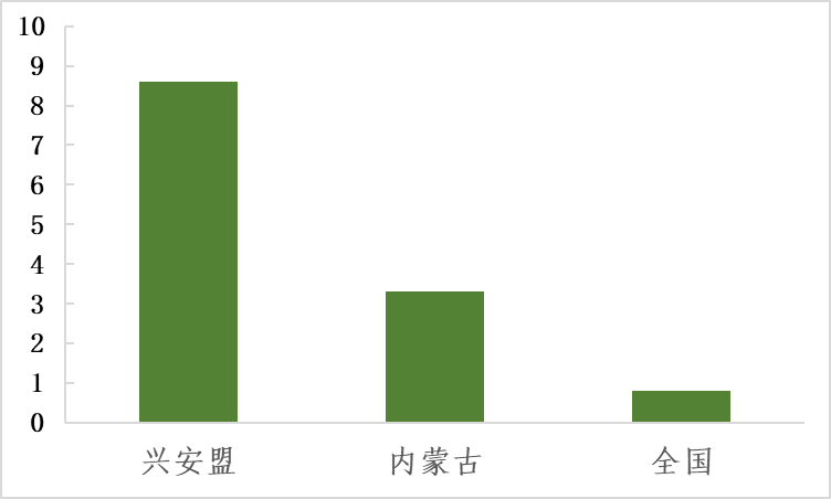 从生态产品价值实现看,2020年兴安盟绿金指数(GEP与GDP的比值)为8.6,高于全国(0.81)和自治区(3.3)的平均水平。兴安盟生态功能重要,生态资源丰富,“绿水青山”向“金山银山”转化潜力大。