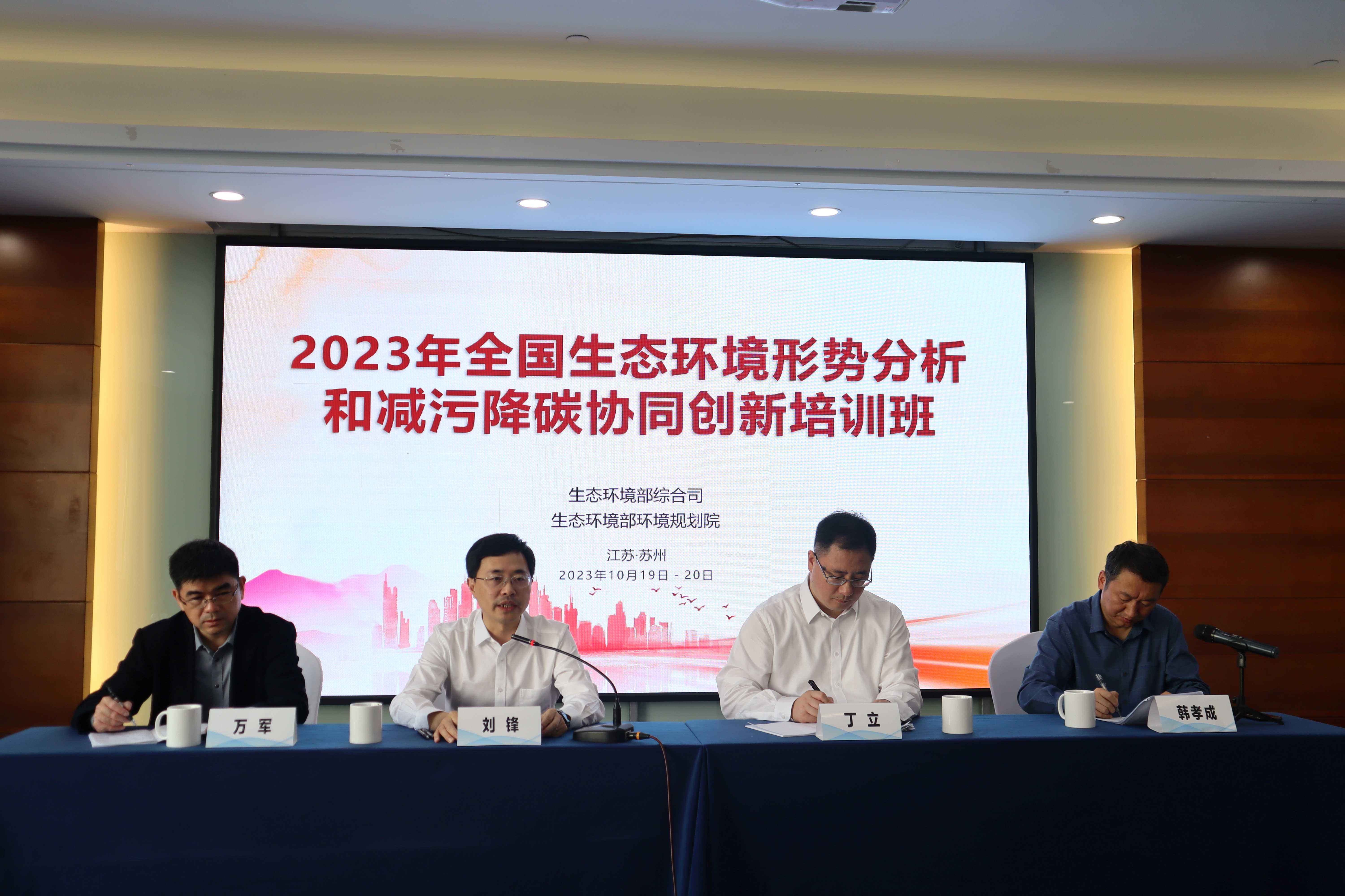 为深入贯彻落实全国生态环境保护大会精神,进一步做好生态环境形势分析,推动减污降碳协同创新工作,2023年10月19日至20日,由生态环境部综合司主办、生态环境部环境规划院承办的2023年全国生态环境形势分析和减污降碳协同创新培训班在江苏省苏州市举办。生态环境部综合司刘锋副司长、江苏省生态环境厅丁立副厅职环境监察专员参加会议并致辞。我院万军副院长、严刚副院长等专家分别作专题报告,全国31个省(区、市)和新疆生产建设兵团生态环境厅(局)及相关技术支撑单位同志共100余人参加了此次培训班。