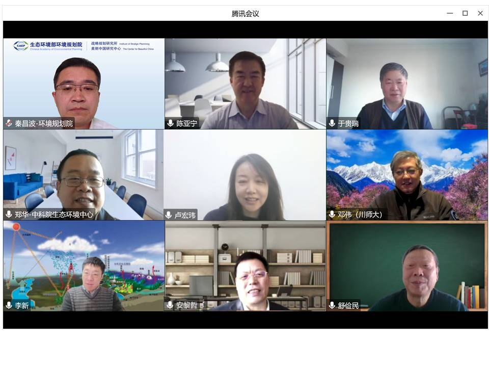 2022年12月24日,“美丽中国”重点研发计划项目组组织召开了国家重点研发计划“‘美丽中国’生态建设指标体系、评估方法及分区管理研究”项目及“十三五”时期“典型脆弱生态修复与保护”专项集成综合绩效评价会议。中国科学院院士、中科院地理科学与资源研究所于贵瑞研究员、中国环境科学研究院舒俭民研究员、北京林业大学安黎哲教授、四川师范大学邓伟教授、中科院新疆生态与地理研究所陈亚宁研究员、中科院青藏高原研究所李新研究员、中科院生态环境研究中心郑华研究员等7位专家,组成了专家组进行综合绩效评价。我院秦昌波研究员作为课题三“‘美丽中国’生态建设的评估方法”负责人进行了汇报。