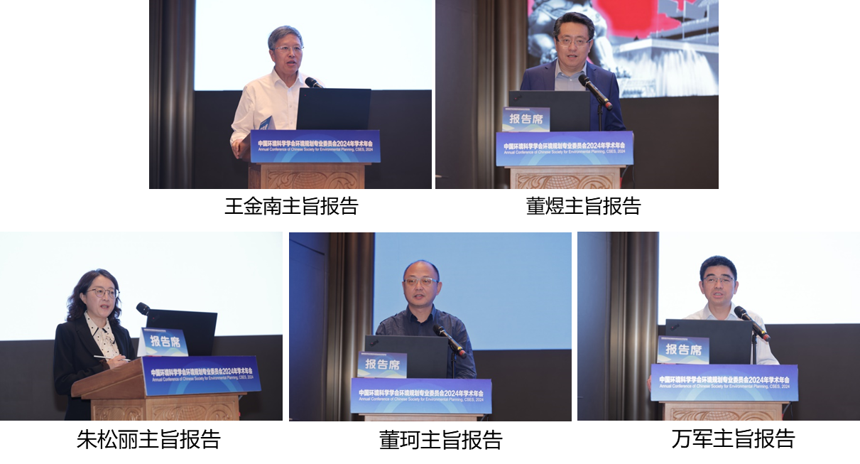 本次年会邀请5位院士和知名专家围绕不同领域作主旨发言。我院王金南院士、清华大学中国发展规划研究院常务副院长董煜研究员、中国宏观经济研究院能源研究所朱松丽研究员、中国城市规划设计研究院董珂副总规划师、我院万军副院长,分别从当代生态环境规划发展的若干思考,“十五五”规划前瞻,全球气候治理下的能源转型,健全城市生态基础设施,面向美丽中国的“十五五”生态环保规划探讨等角度作主旨报告。主旨报告由我院战略规划研究所所长、环境规划专业委员会副主任委员兼秘书长秦昌波主持。