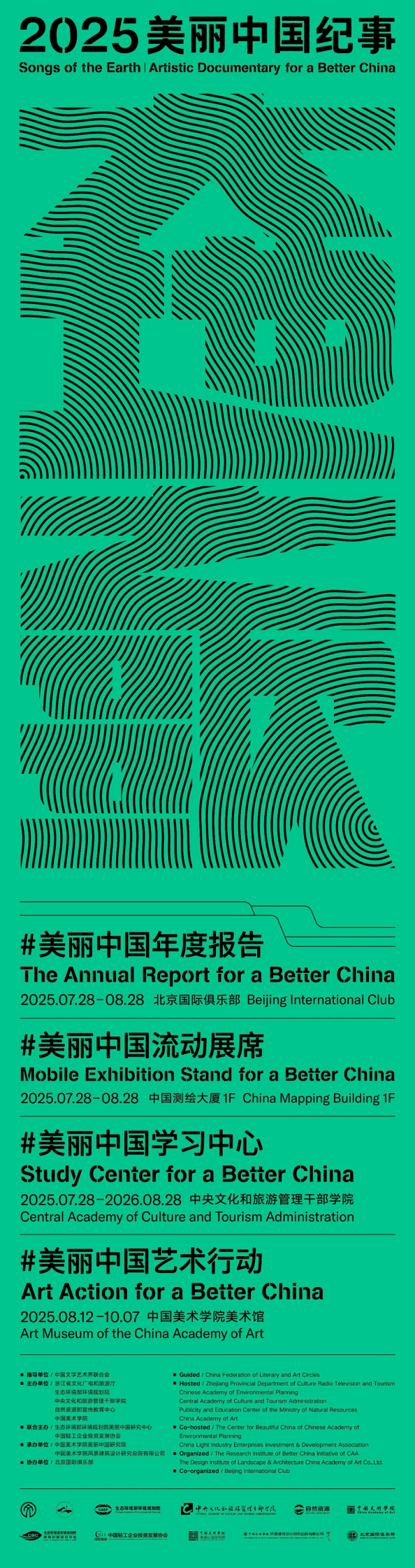 在“绿水青山就是金山银山”理念提出20周年之际,当基本实现美丽中国目标进入10周年倒计时,“大地之歌·2025美丽中国纪事”系列展览陆续在北京杭州两地展开。展览由中国文学艺术界联合会指导,浙江省文化广电和旅游厅、生态环境部环境规划院、中央文化和旅游管理干部学院、自然资源部宣传教育中心、中国美术学院主办,生态环境部环境规划院美丽中国研究中心、中国轻工企业投资发展协会联合主办,中国美术学院美丽中国研究院、中国美术学院风景建筑设计研究总院有限公司承办,北京国际俱乐部协办。