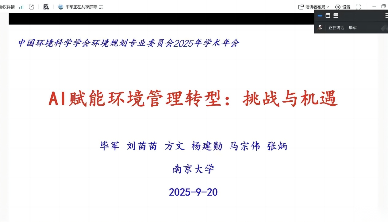 毕军(南京大学):AI赋能环境管理转型的挑战与机遇