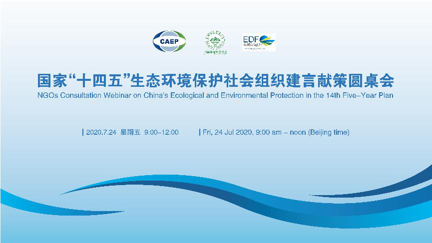 2020年7月24日,生态环境部环境规划院、中国环境科学学会和美国环保协会共同组织召开了《国家“十四五”生态环境保护社会组织建言献策》圆桌视频会。来自中国生态文明研究与促进会、中国生态学学会、世界自然保护联盟(IUCN)、自然资源保护协会(NRDC)、大自然保护协会(TNC)、世界资源研究所(WRI)、世界自然基金会(WWF)、能源基金会(EF China)、绿色和平(Greenpeace)、亚洲清洁空气中心(CAA)、中国清洁空气政策伙伴关系(CCAPP)、中国生物多样性保护与绿色发展基金会、北京市企业家环保基金会(SEE Foundation)、自然之友、创绿研究院、山水自然保护中心等18家国内外环保机构和社会组织的代表共同参与了视频研讨。生态环境部综合司规划区划处贾金虎处长、环境规划院有关部门负责人和“十四五”生态环境规划编制组主要技术人员参加了此次会议。