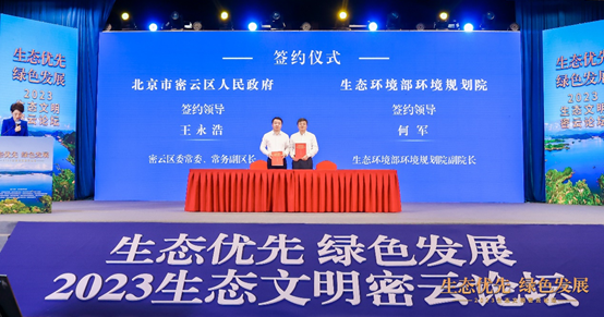 签约环节,何军副院长、王永浩副区长分别代表生态环境部环境规划院和密云区人民政府签署战略合作协议。根据协议,双方将在生态环境技术、生态产品价值实现路径、生态产品第四产业配套政策等方面深入合作,建立常态化合作交流机制,共同谋划人与自然和谐共生的美丽密云发展,共同推进生态立区,打造绿水青山就是金山银山创新实践样板。
