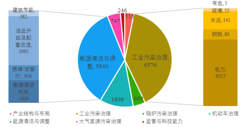 图2 全国《大气十条》实施的费用情况(单位:亿元)