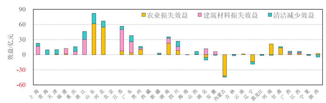 图4 全国30个省份《大气十条》实施五年期间空气质量改善及其带来的效益