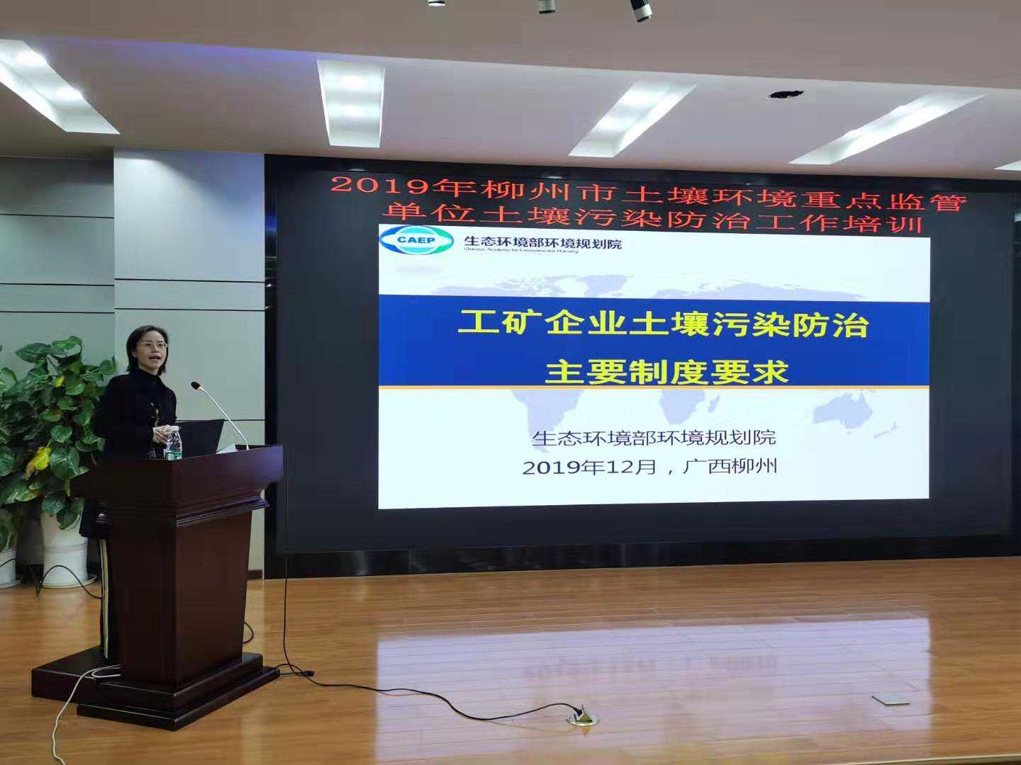 柳州市是广西壮族自治区土壤污染防治省级先行示范区。为提高柳州市土壤污染防治管理能力,提高重点监管企业土壤污染防治水平,2019年12月17-18日由柳州市生态环境局主办、我院承办的2019年柳州市土壤环境管理与污染防治工技术培训会在柳州市顺利召开。来自我院相关部门的六名专家和广西壮族自治区环境科学研究院土壤环境研究中心的一名专家共计开展了九个主题授课。柳州市级和各区县自然资源和规划、生态环境、住建、农业农村等部门,柳州市土储中心,市轨道集团、市城建集团、市产业集团、市水务集团等市级多个集团公司和19家土壤污染防治重点监管企业代表共计134人参加了本次培训。会议由柳州市生态环境局赵福副局长主持。