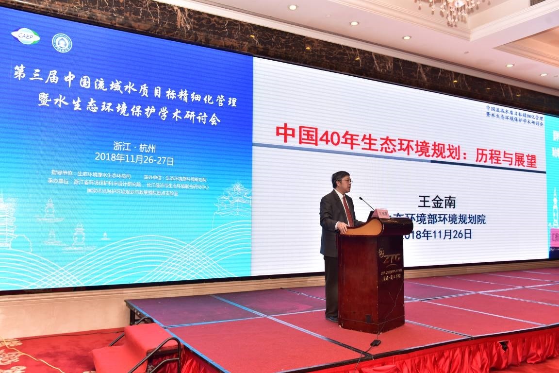 2018年11月26-27日,由生态环境部水生态环境司指导,我院主办,浙江省环境保护科学设计研究院、长江经济带生态环境联合研究中心承办的第三届中国流域水质目标精细化管理暨水生态环境保护学术研讨会在浙江杭州顺利召开。来自生态环境部水生态环境司、生态环境部环境规划院、各省(区、市)生态环境厅(局)、流域水资源保护局、中国水利水电科学研究院、中国科学院、相关高校以及科研院所等单位代表共计360余人参加了会议。研讨会围绕水生态环境管理、长江保护修复、水污染防治技术与政策、水环境模型模拟、地下水污染防治等方面开展了研讨。