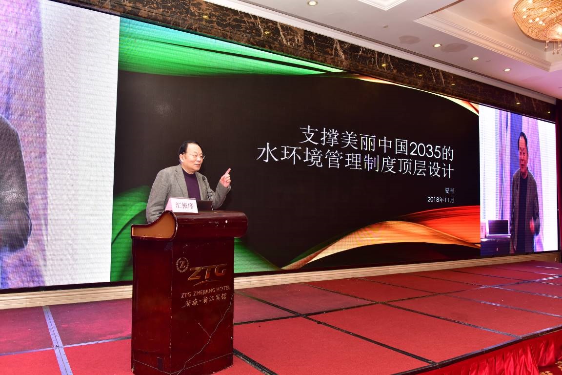生态环境部水生态环境司赵世新副司长,浙江省生态环境厅陈畅副厅长,中国工程院院士、生态环境部环境规划院院长王金南,中国环境科学研究院夏青研究员,中国人民大学王洪臣教授、中国科学院南京地理与湖泊研究所段学军研究员、南京大学毕军教授、清华大学周建军教授、中国地质大学(北京)陈鸿汉教授、武汉大学张万顺教授等领导和专家做了大会主旨报告。赵世新副司长分析了我国水生态环境监管工作面临的形势,总结了当前水生态环境监管工作的总体思路和重点任务,并对做好水生态环境管理技术支撑工作提出了重要建议。陈畅副厅长介绍了浙江省认真践行习近平总书记治水思想,举全省之力推进以治污水、防洪水、排涝水、保供水、抓节水为内容的“五水共治”的浙江省治水经验。夏青研究员系统阐述了中国环境管理制度发展历程,从全局角度提出了支撑美丽中国2035的水环境管理制度顶层设计。王金南院长系统回顾了40多年来我国生态环境规划的发展历程,总结了规划体系进展情况,并结合新时期、新形势、新使命,对我国生态环境保护规划进行了趋势展望。同时举行的三个分会场上,与会代表就各位专家的发言以及流域水生态环境管理的一系列重点、难点和热点问题展开了热烈的讨论。